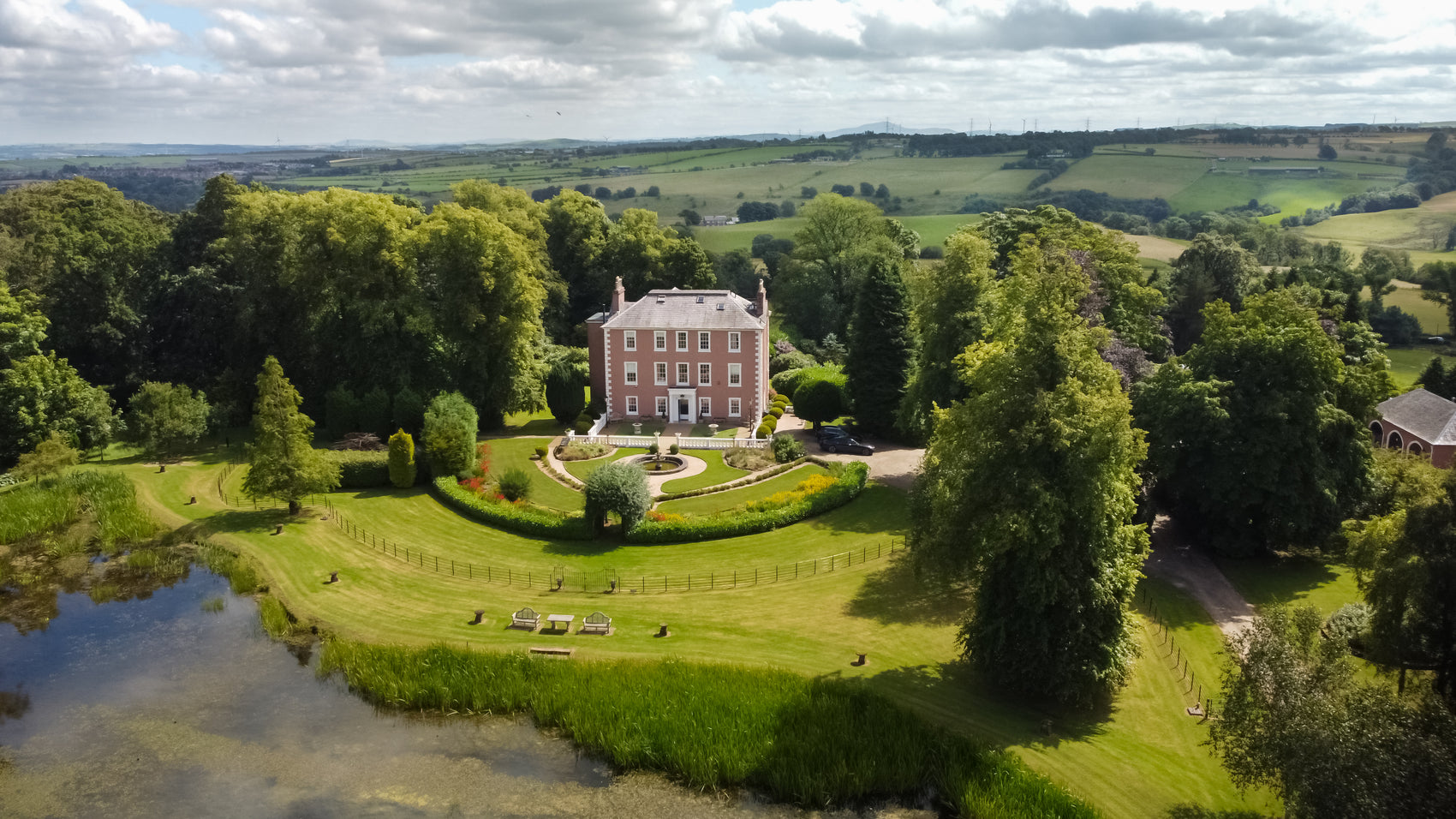 At the centre of the estate is a Listed Georgian villa, built in 1776. Surrounded by formal gardens, ancient trees, and open skies, it’s a place where time seems to slow down and moments unfold naturally.